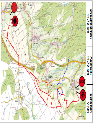 Aus Reihen des Ortsrates kommt der Hinweis, dass ein Teil der Strecke Schotterweg ist. Dies aber laut Rallye als Teerweg ausgezeichnet ist. Siehe Markierung im angehängten Plan.